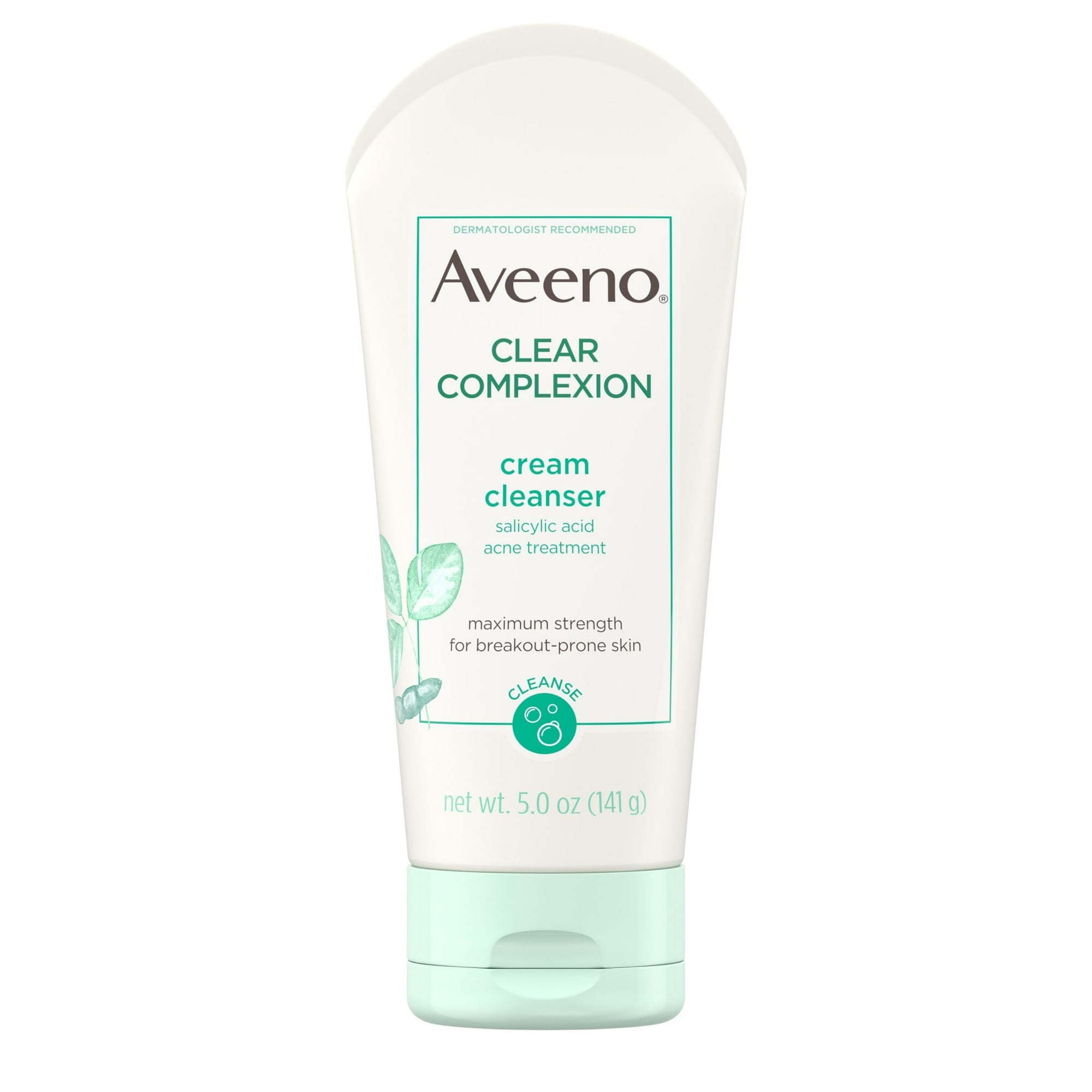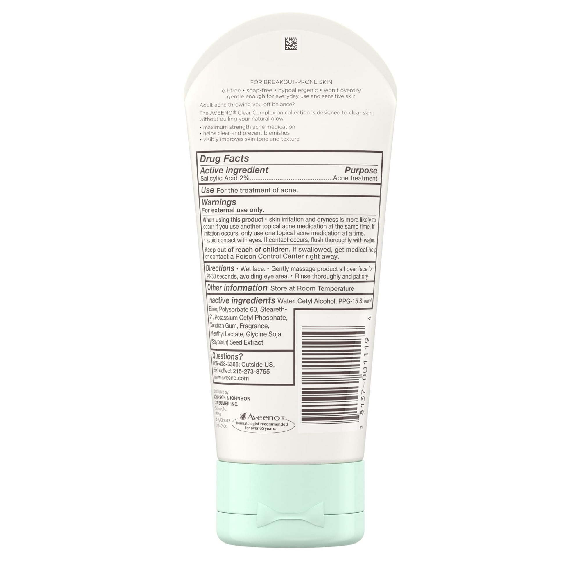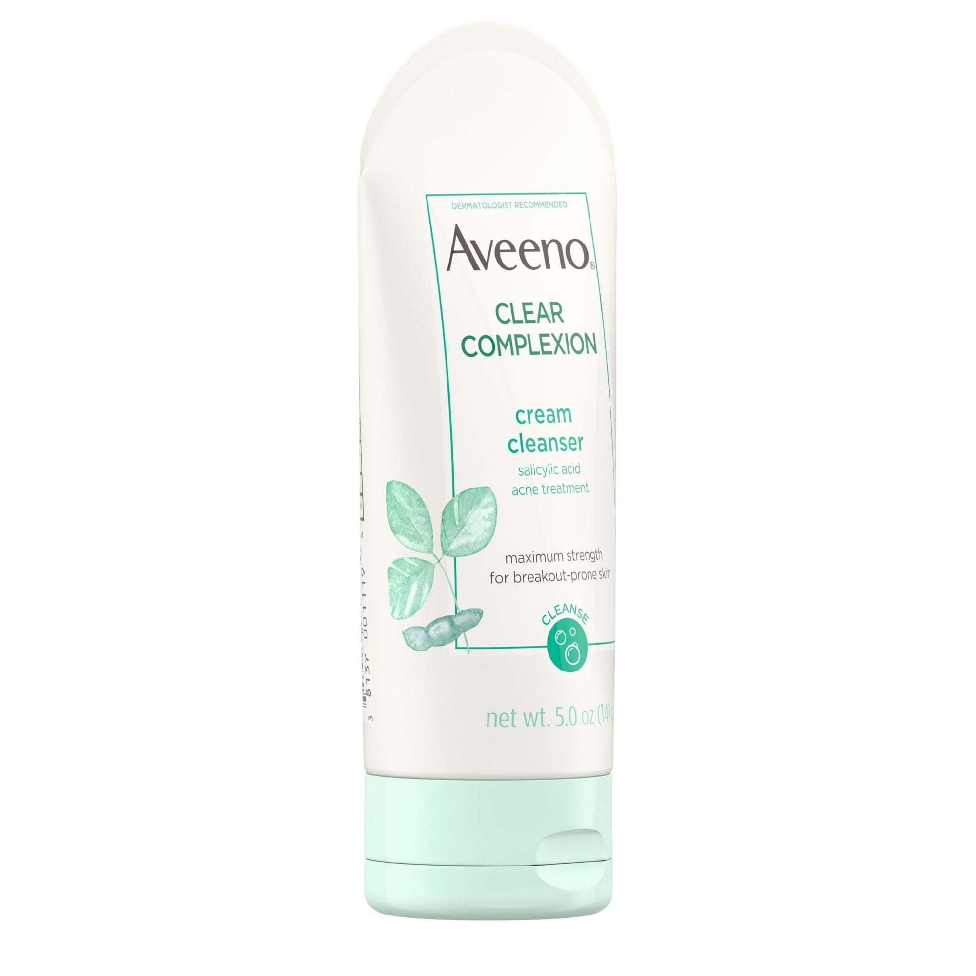 For breakout-prone skin, Aveeno Clear Complexion Cream Cleanser helps clear and prevent breakouts while visibly improving skin's tone and texture. For dull, uneven skin, this cleanser is formulated with maximum strength acne medication. The formula with salicylic acid and soy both fights and prevents blemishes while helping to improve skin tone. Aveeno Clear Complexion Cream Cleanser is oil-free, soap-free, hypoallergenic, and non-comedogenic, and is also non-irritating and won't overdry your skin. This daily facial cleanser is gentle enough for everyday use and sensitive skin.Adult acne throwing you off balance? The Aveeno Clear Complexion collection is designed to clear skin without dulling your natural glow. Each exclusive soy-enriched product, with clinically proven acne medication, clears blemishes and helps reveal your skin's true radiance. Aveeno has been dermatologist recommended for over 65 years.