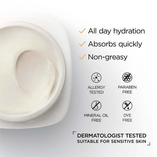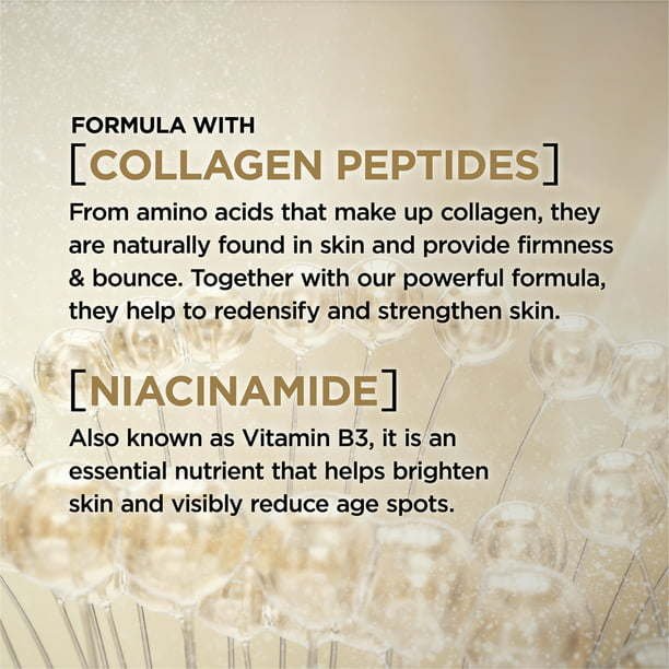 RETIGHTENED, FIRMER, MORE EVEN SKIN! Age Perfect Collagen Expert Night Moisturizer provides a daily boost of Collagen Peptides + Niacinamide to intensely rehydrate and firm maturing skin. Paraben free. Mineral oil free. Dye free. Allergy tested. WHAT IS COLLAGEN? Collagen is a natural protein abundantly present in the skin. It provides skin’s strength, firmness, and bounce. After 50, the skin’s collagen production slows which can lead to loss of volume and sagging. WHAT ARE PEPTIDES? Recommended by dermatologists, peptides are the building blocks of collagen and are key for its natural production in the skin. Our collagen peptides, along with the other ingredients in our powerful formula, help lock in moisture, firm and retighten skin. WHAT IS NIACINAMIDE? Also known as Vitamin B3, this essential nutrient helps to brighten skin overall and to reduce age spots. VISIBLE RESULTS In the morning, skin is intensely hydrated, and contours feel toned. Over time, skin looks tighter, and firmer with brighter, more even tone. Overall complexion looks younger and healthier. HYDRATING, NON-GREASY TEXTURE: This lightweight face cream provides all-night hydration. It absorbs quickly and doesn’t leave a greasy or sticky finish.