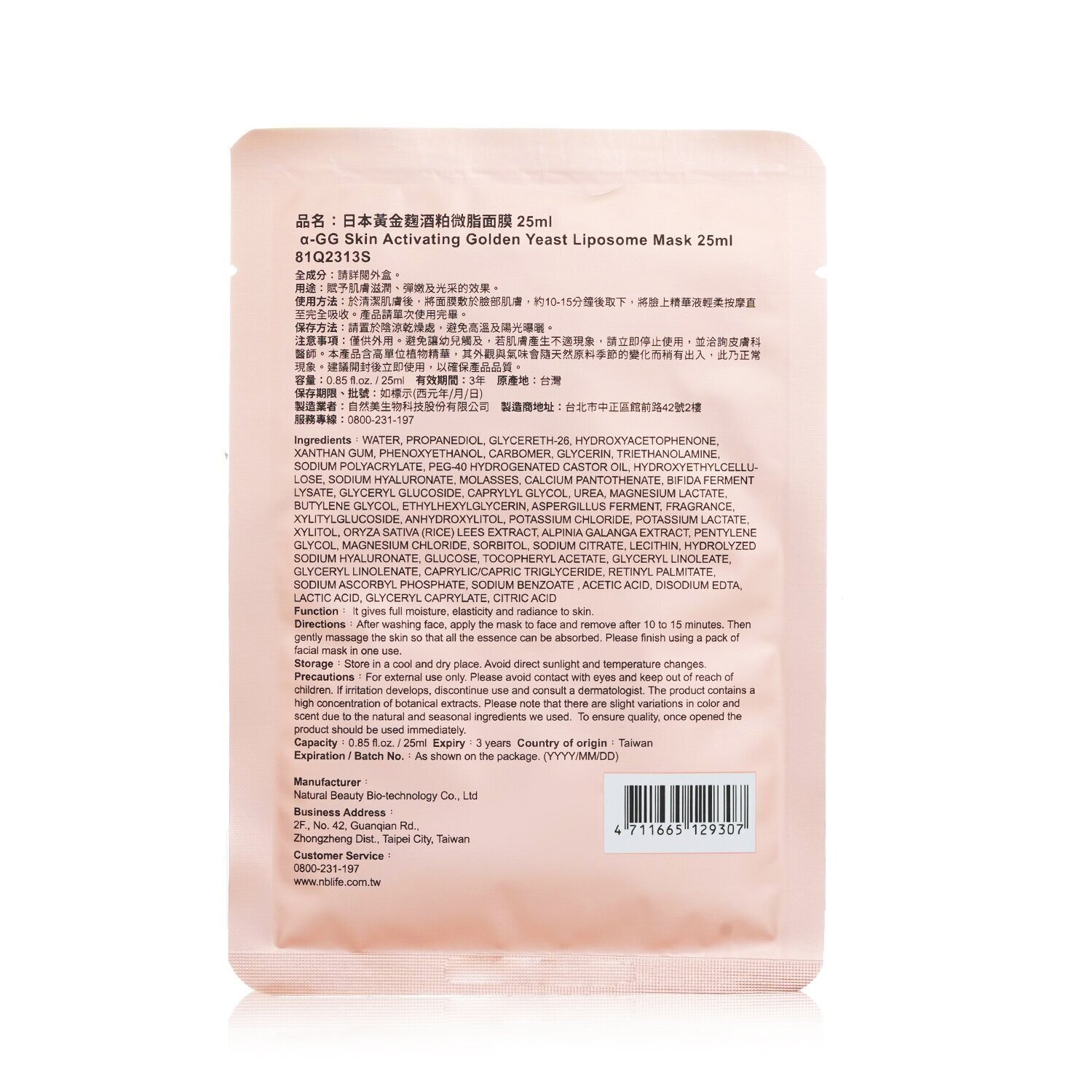 Home > NATURAL BEAUTY - (For KR) BIO UP a-GG Skin Activating Golden Yeast Liposome Mask 5x25ml/0.84oz - As Picture