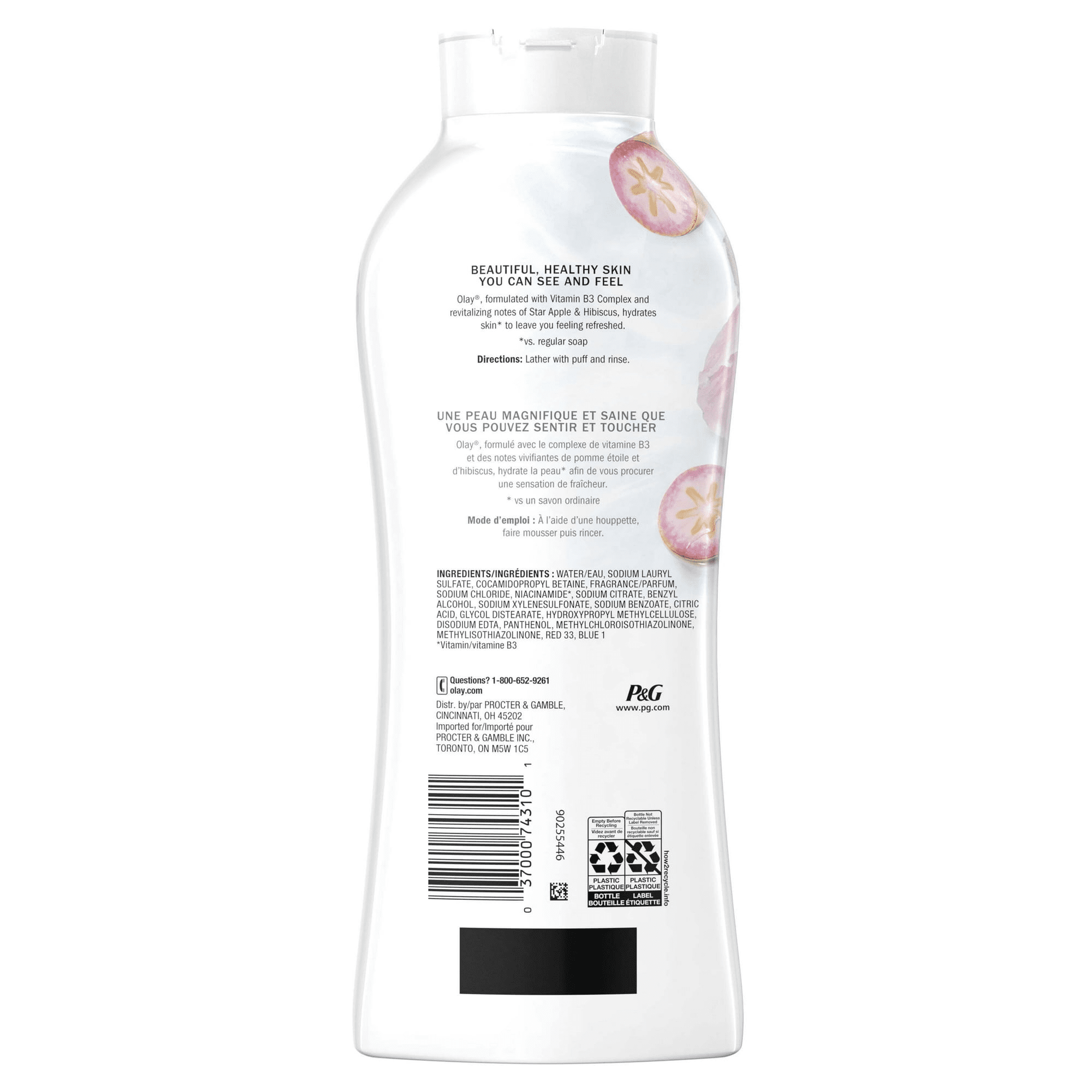 Beautiful, healthy skin you can see and feel - turn shower time into a luxurious, spa-like experience with olay fresh outlast star apple & hibiscus women's body wash. Now formulated with olay's vitamin b3 complex, and the pampering notes of star apple & hibiscus, it hydrates skin better than regular soap to leave you feeling refreshed. It wraps your skin in a crave-able fragrance and leaving you feeling refreshed. All female skin types