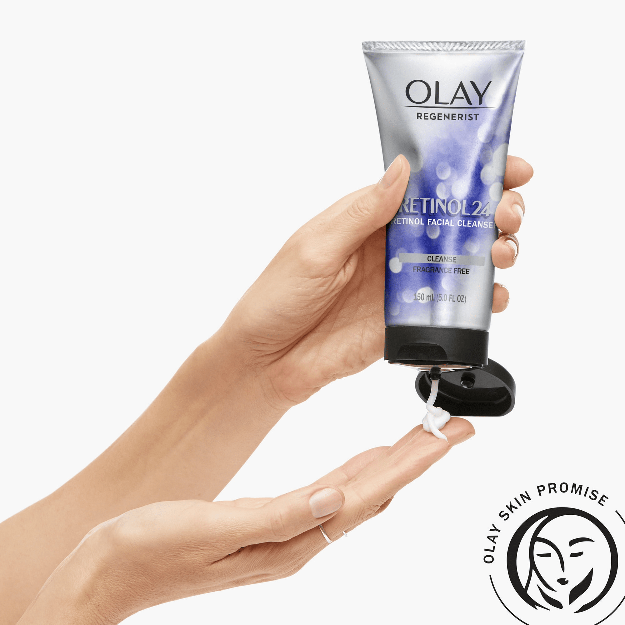 Are you getting the most out of your retinol? We've designed this creamy olay regenerist retinol 24 facial cleanser to prep your skin for retinol24 products. The gentle exfoliators smooth your skin's surface while our vitamin b3 retinoid complex renews your skin. Before using other retinol 24 products, massage this product onto your face and rinse well. We've made this cleanser without fragrance, parabens, phthalates, mineral oil, or synthetic dyes so you can get the most out of your skin care. At olay, we're serious about our commitments. Our olay skin promise to you is zero skin retouching in all advertising. Olay is the first mass skin care brand in the us to take this stance, because we know real beauty is honestly beautiful. We also guarantee you'll love your olay product. If you are not satisfied, we'll give you your money back via a prepaid card. Must submit within 60 days of purchase. Call toll-free 1-855-845-9797 or visit olay.Com/guarantee.
