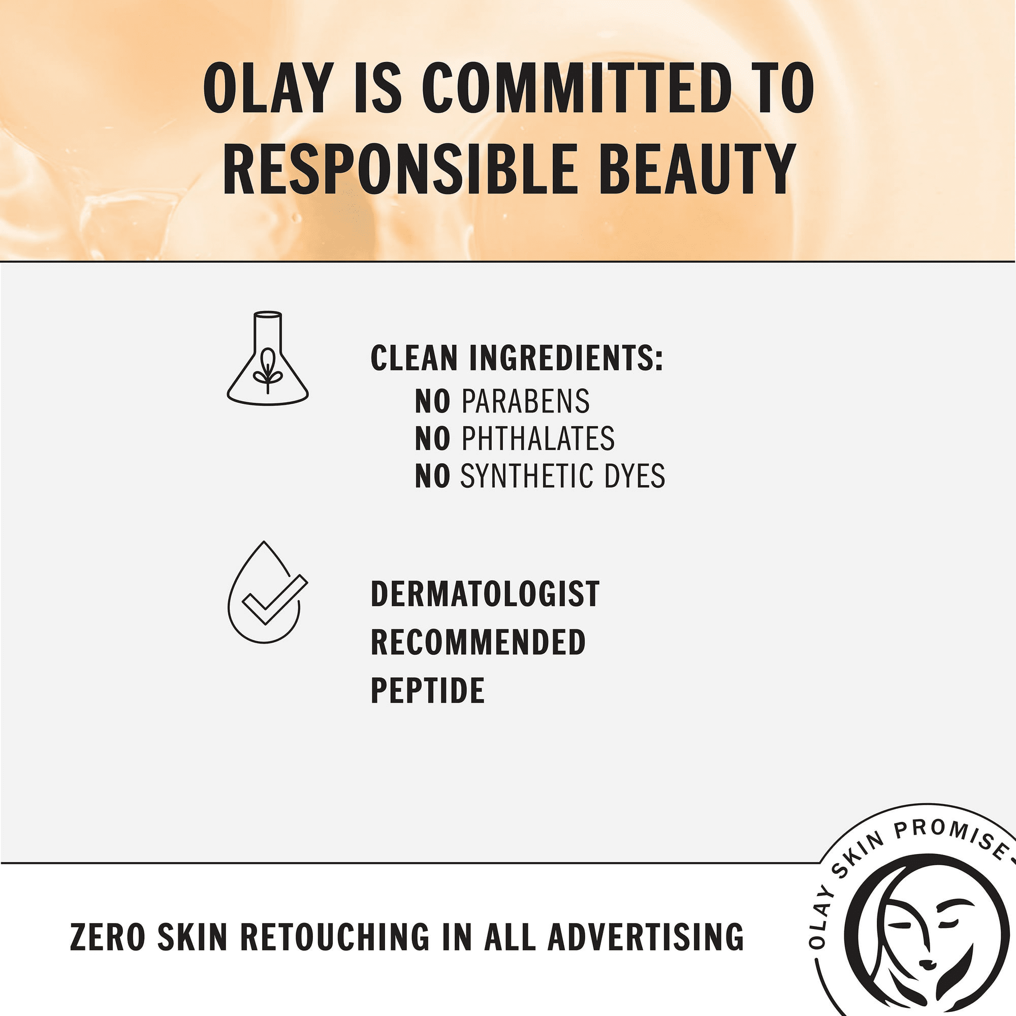 Boost your brightness and glow with our olay regenerist vitamin c + peptide 24 moisturizer with spf 30. This glow-boosting moisturizer delivers spf 30 protection with a convenient pump. Citrus-scented and lightweight, this smooth cream formula melts into your skin with no heavy or greasy residue. It's crafted with vitamin c, peptides and sunscreen actives, so you'll see visibly brighter and hydrated skin that's also protected from the sun. To use, smooth evenly over your cleansed face in the morning to protect your radiant skin. You will instantly improve skin's hydration and get spf30 sun protection. In 1 week, you will have skin that looks firmer, with a radiant glow. With continued use, it will help fight signs of aging caused by the sun with powerful uva/uvb protection. This face moisturizer is made without parabens, phthalates, synthetic dyes or mineral oils. When it comes to skin, there's no limit to how radiant you can be. Our olay skin promise to you is zero skin retouching in all advertising. Olay is the first mass skin care brand in the us to take this stance, because we know real beauty is honestly beautiful. We also guarantee you'll love your olay product. If you are not satisfied, we'll give you your money back via a prepaid card. Must submit within 60 days of purchase. Call toll-free 1-855-845-9797 or visit olay.Com/guarantee.