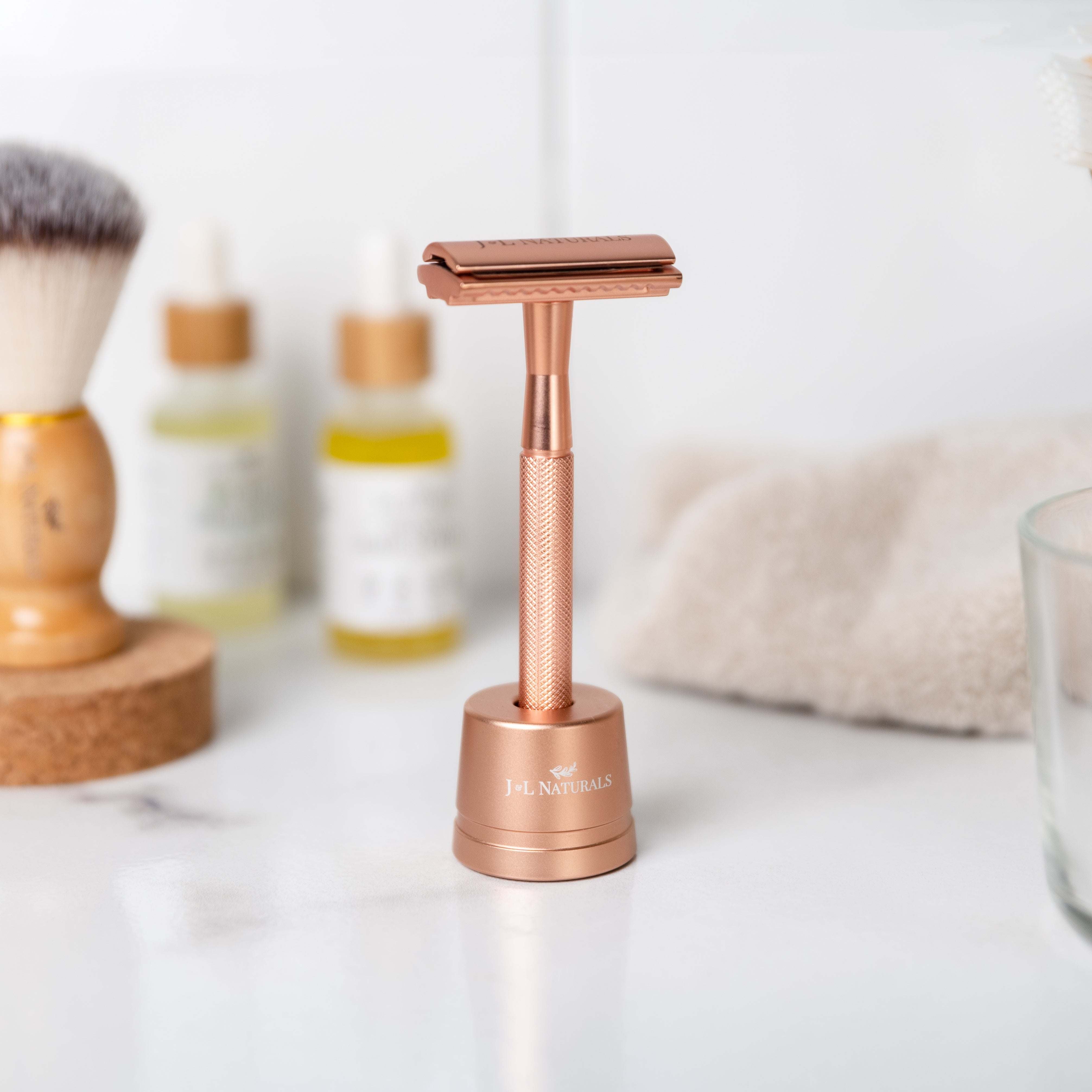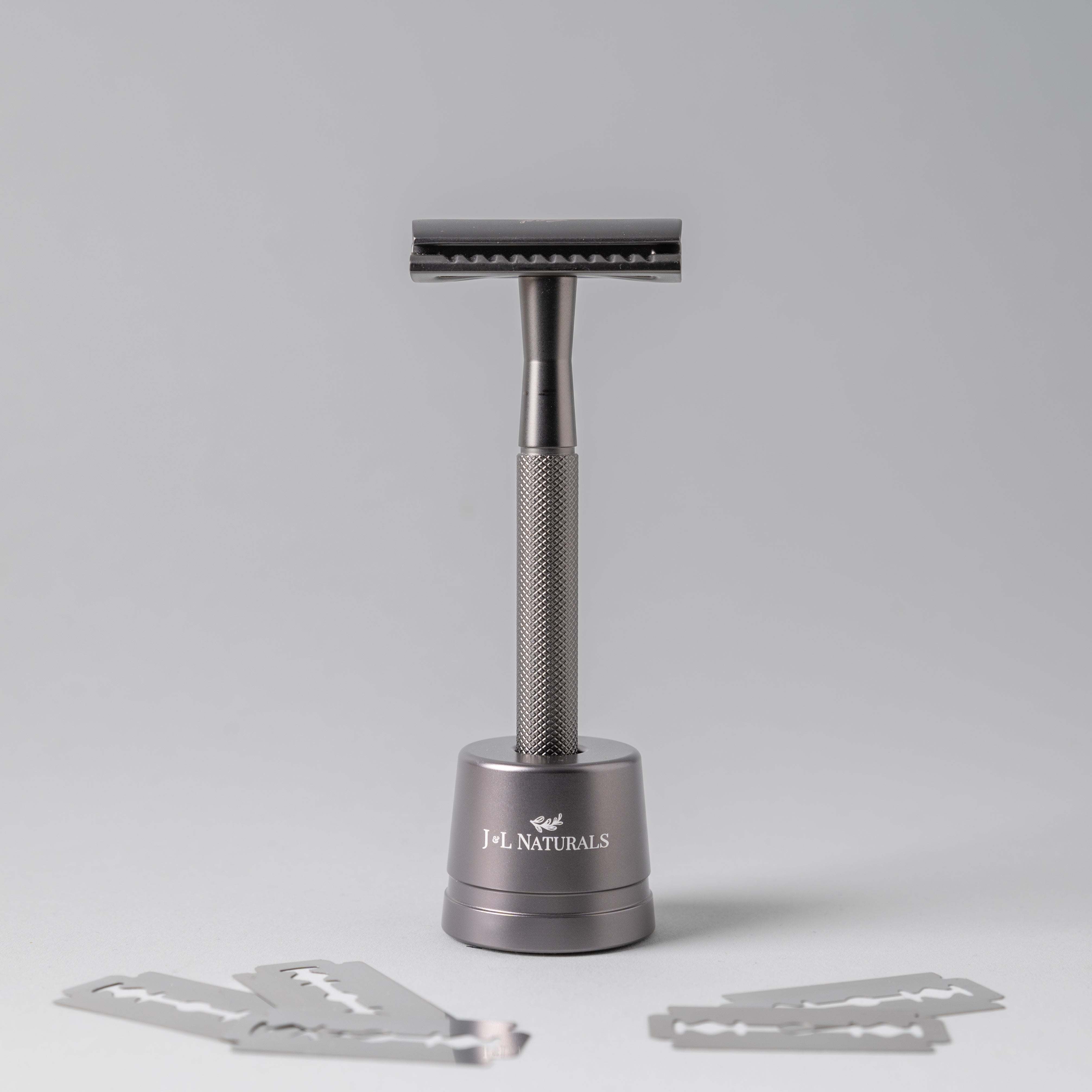 Still using that old plastic razor that keeps nicking your skin and creating more waste? Now you can elevate your shaving experience and help the earth with our reusable Razor Set, which includes one Razor and Razor Stand. The Razor is crafted from stainless steel, giving you a smoother, more precise shave. It features a sleek, ergonomic design you'll want to show off on your bathroom counter. Meanwhile, the Razor Stand is designed to hold our reusable Razor in place, a stylish addition to any bathroom and helps keep it tidy.